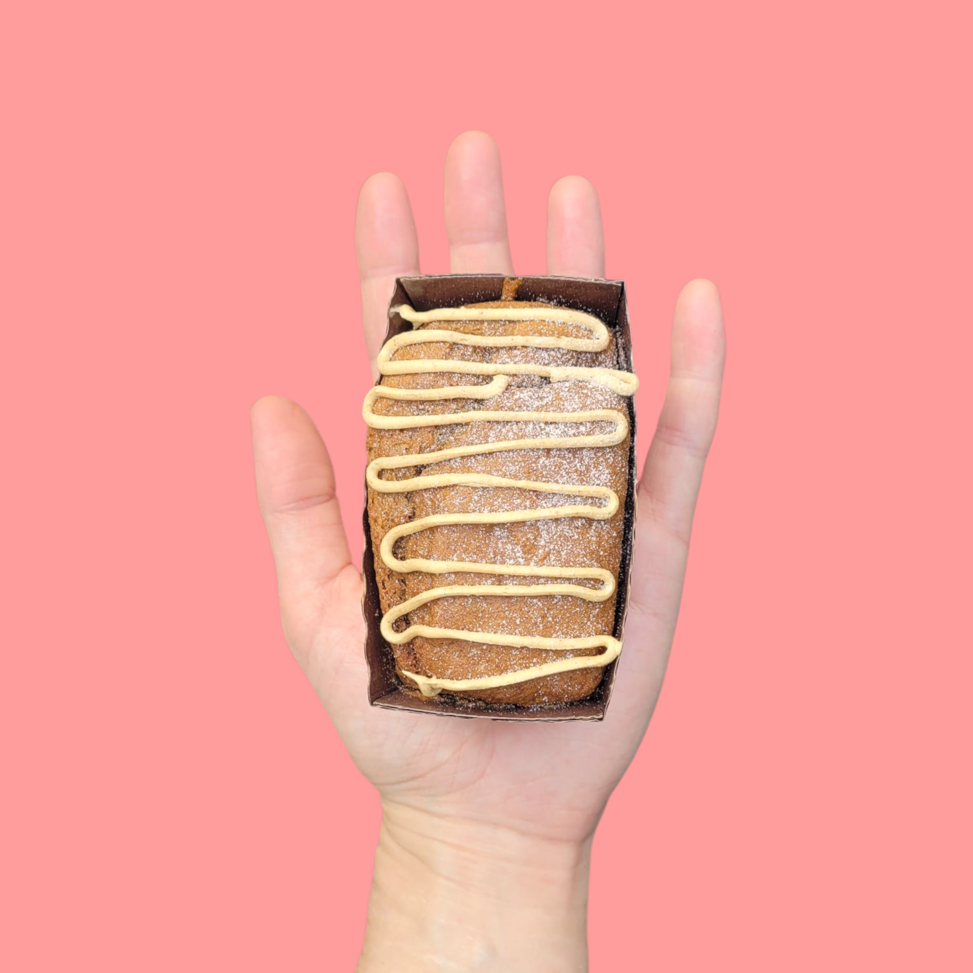 Our Pumpkin Spice Mini Loaf is the perfect taste of autumn in every bite. Soft, moist, and warmly spiced with cinnamon, nutmeg, and cloves, it’s finished with a drizzle of sweet frosting and a dusting of sugar for a cozy seasonal treat.